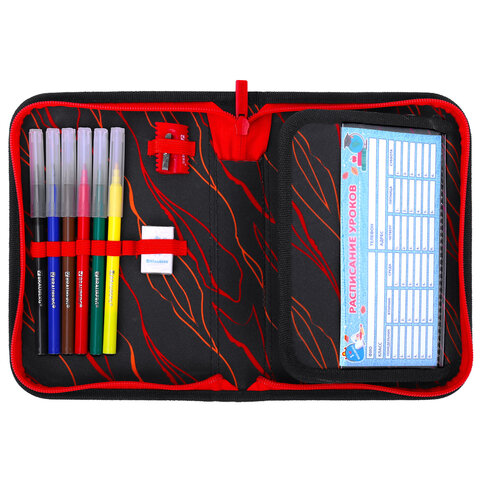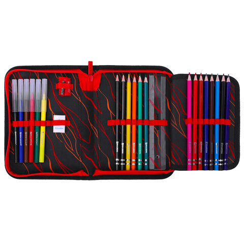 Пенал BRAUBERG с наполнением, 1 отделение, 1 откидная планка, 24 предмета, 21х14 см, "Fire dino", 273535, 2шт.#S