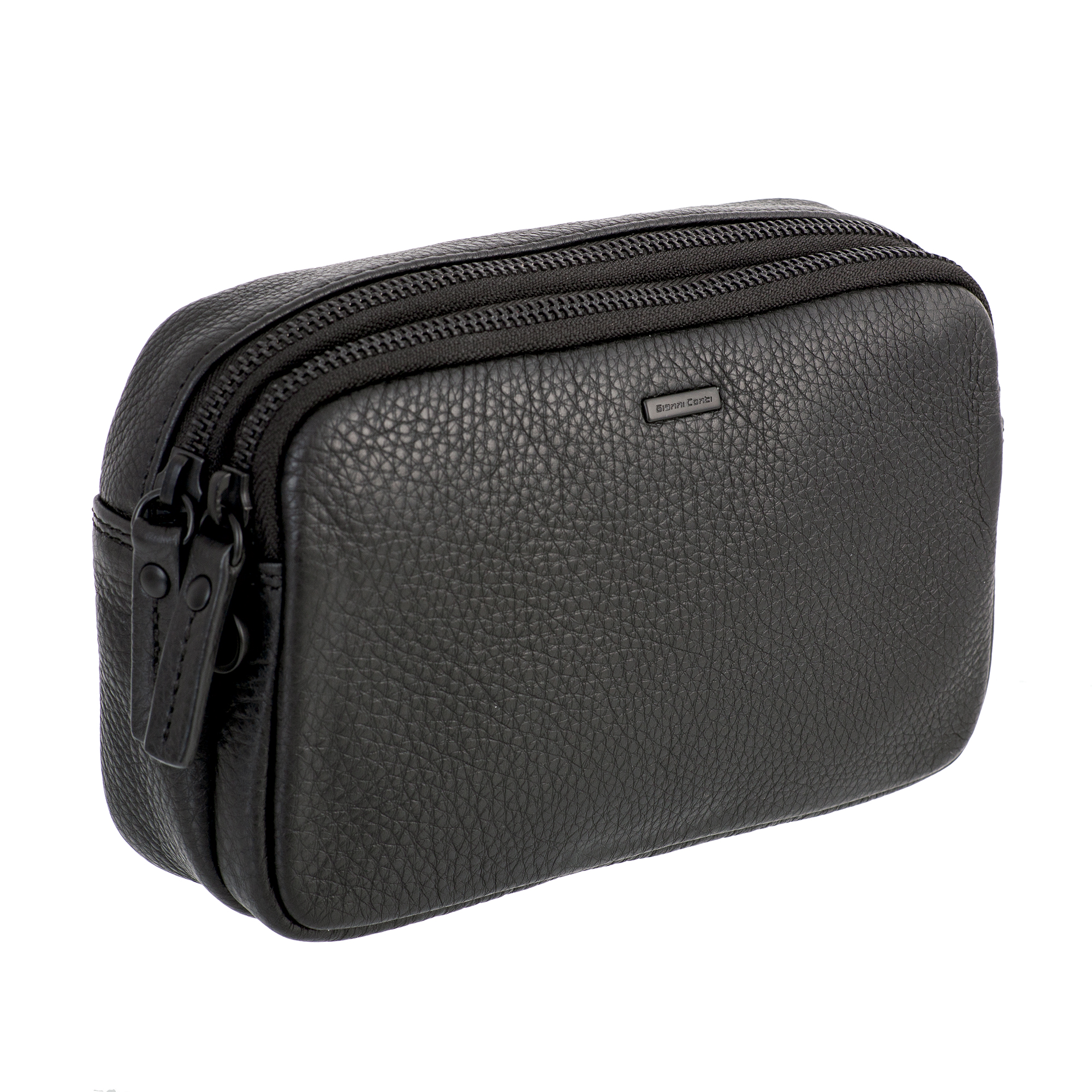 Чёрный мужской клатч из натуральной кожи Gianni Conti. Закрывается на молнию. Внутри расположено одно просторное отделение, в котором карман на молнии и четыре кармашка для пластиковых карт.