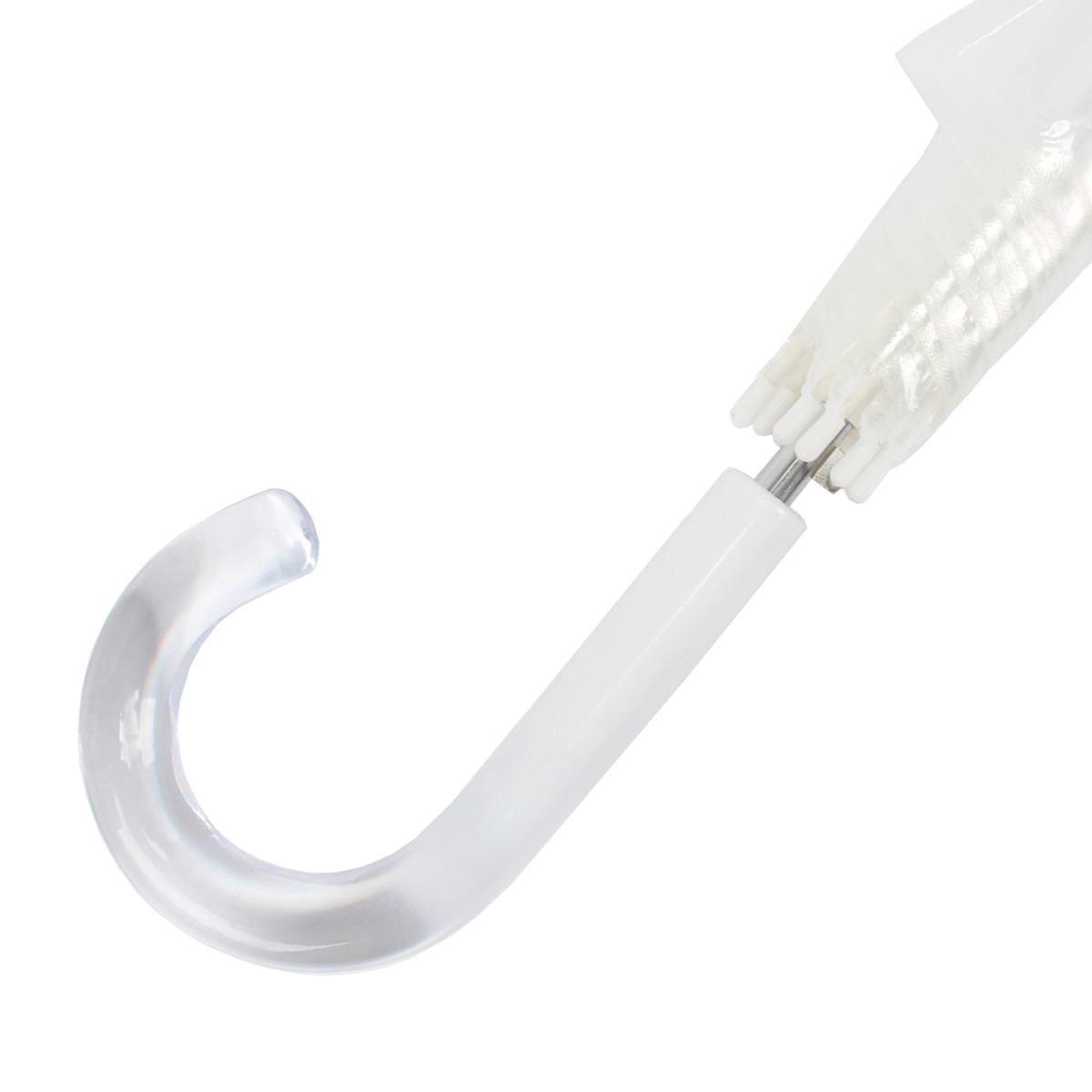 Необычный белый прозрачный женский зонт-трость полуавтомат от бренда «Zemsa». Купол зонта прозрачный. Инновационные, экологичные, гипоаллергенные материалы без запаха. Купол зонта не требует дополнительной обработки. Открывается через кнопку, закрывается в ручную. Ручка крюк из пластика. Красивое белое обрамление купола зонта. Есть чехол. Размер купола 116 см.