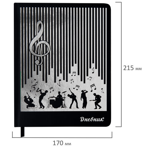 Дневник для музыкальной школы 170х215 мм, 48 л., обложка кожзам твердая, фольга, BRAUBERG, справочный материал, МУЗЫКАНТЫ, 107366, 4шт.#S