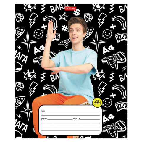 Тетрадь 12 л., HATBER клетка, обложка картон, "Влад А4" (микс в спайке), 073122, 12Т5В1, 60шт.#S