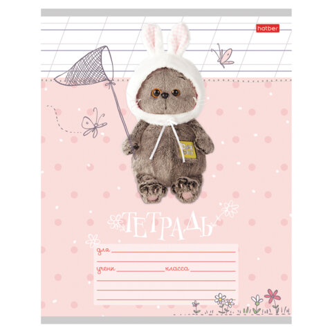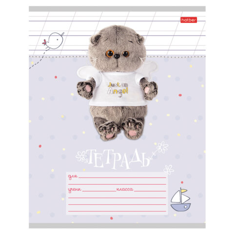 Тетрадь 12 л., HATBER косая линия, обложка картон, "Кот Басик" (микс в спайке), 051747, 12Т5В6, 60шт.#S