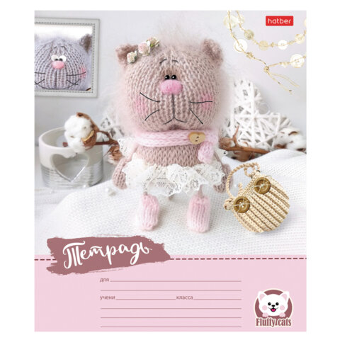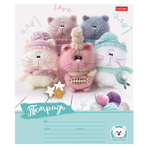 Тетрадь 12 л., HATBER узкая линия, обложка картон, "Уютные котики" (микс в спайке), 075154, 12Т5В7, 60шт.#S