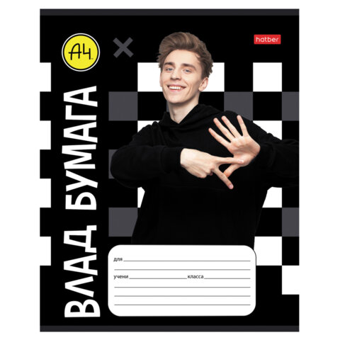 Тетрадь 18 л., HATBER клетка, обложка картон, "Влад А4" (микс в спайке), 082404, 18Т5В1, 50шт.#S