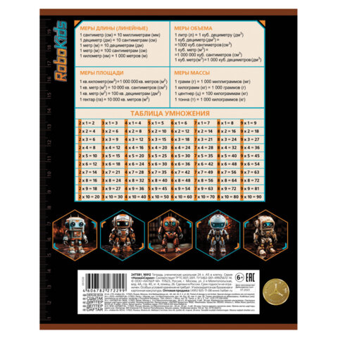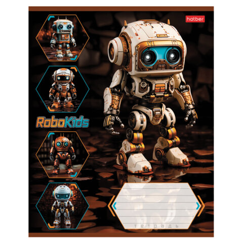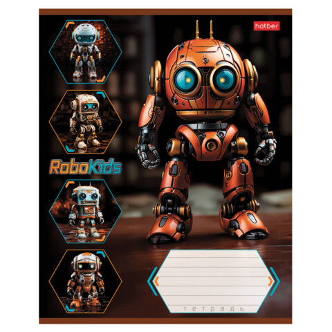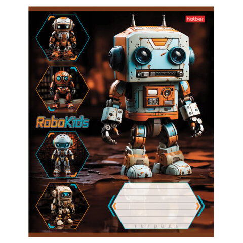 Тетрадь 18 л., HATBER клетка, обложка картон, "Робо" (микс в спайке), 084624, 18Т5В1, 50шт.#S
