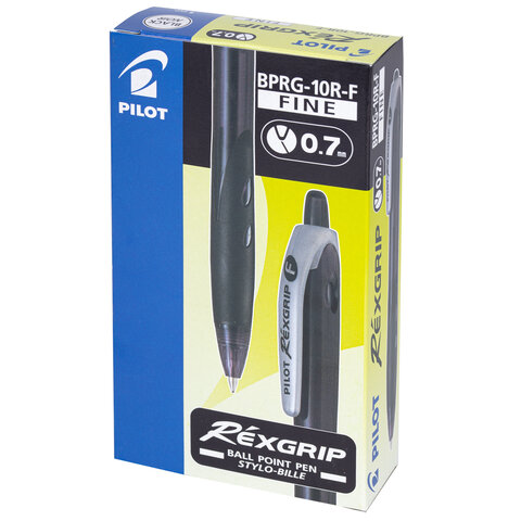 Ручка шариковая масляная автоматическая PILOT "Rex Grip", узел 0,7 мм, линия 0,32 мм, упор, черная, BPRG-10R-F B, 12шт.#S