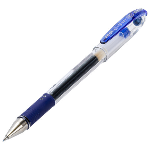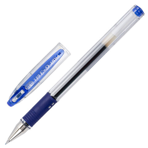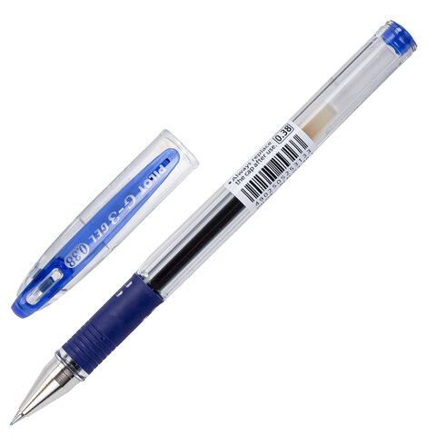 Ручка гелевая PILOT "G-3", корпус прозрачный, узел 0,38 мм, линия 0,2 мм, резиновый упор, синяя, BLN-G3-38 L, 12шт.#S