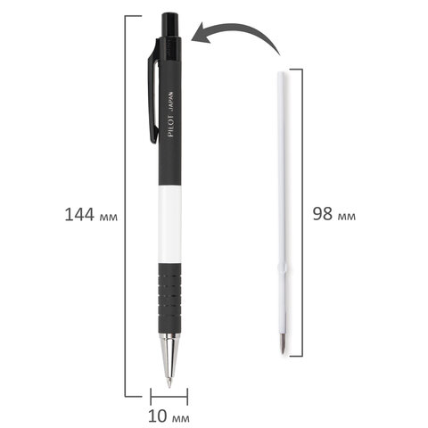Ручка шариковая автоматическая PILOT, СИНЯЯ, корпус прорезиненный черный, узел 0,7 мм, линия 0,22 мм, BPRK-10M B, 12шт.#S