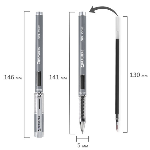 Ручка гелевая BRAUBERG "GEL ONE", ЧЕРНАЯ, стандартный узел 0,5 мм, линия письма 0,35 мм, 144037, 24шт.#S