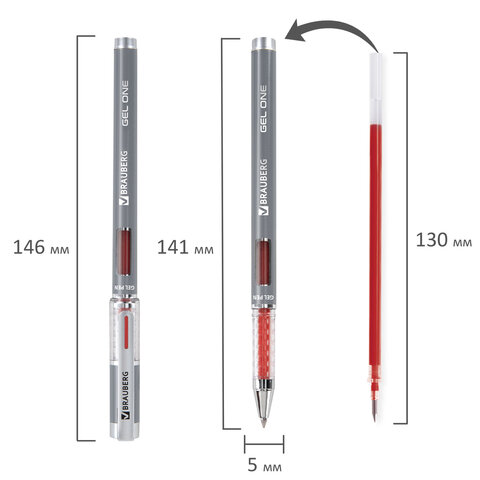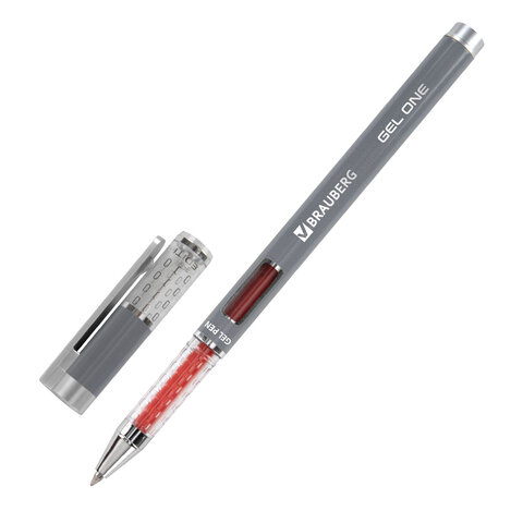 Ручка гелевая BRAUBERG "GEL ONE", КРАСНАЯ, стандартный узел 0,5 мм, линия письма 0,35 мм, 144038, 24шт.#S