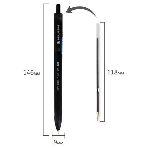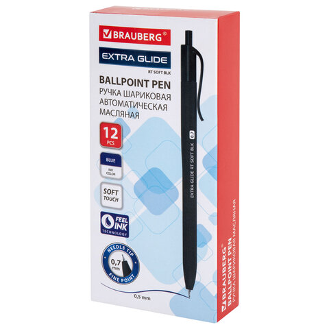 Ручка шариковая масляная автоматическая BRAUBERG "Extra Glide RT SOFT BLK", СИНЯЯ, игольчатый наконечник 0,7 мм, линия 0,5 мм, 144261, 36шт.#S