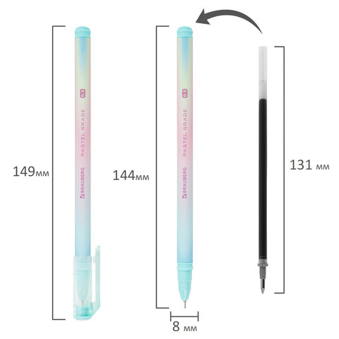 Ручка гелевая BRAUBERG GRADE PASTEL, СИНЯЯ, игольчатый узел 0,5 мм, линия письма 0,3 мм, 144284, 30шт.#S