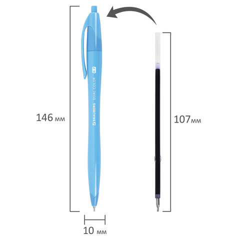 Ручка шариковая автоматическая масляная BRAUBERG "DUAL COLOR", СИНЯЯ, игольчатый наконечник 0,7 мм, линия письма 0,35 мм, 144327, 48шт.#S