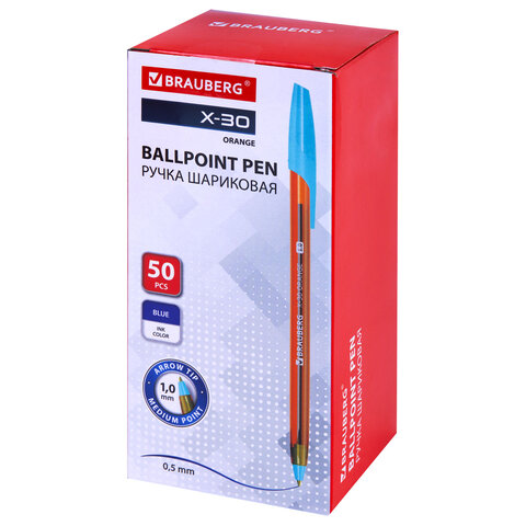 Ручка шариковая BRAUBERG X-30 ORANGE, СИНЯЯ, мягкое письмо, пишущий узел 1 мм, линия письма 0,5 мм, 144333, 150шт.#S