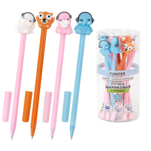 Ручка с топпером шариковая масляная FUNSTER (ФАНСТЕР) "TOPPER MIX", СИНЯЯ, корпус ассорти, пишущий узел 0,7 мм, линия письма 0,35 мм, 144368, 24шт.#S
