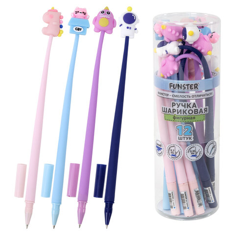 Ручка фигурная силиконовая шариковая FUNSTER (ФАНСТЕР) "SILICONE MIX", СИНЯЯ, корпус ассорти, узел 0,7 мм, линия письма 0,35 мм, 144370, 12шт.#S