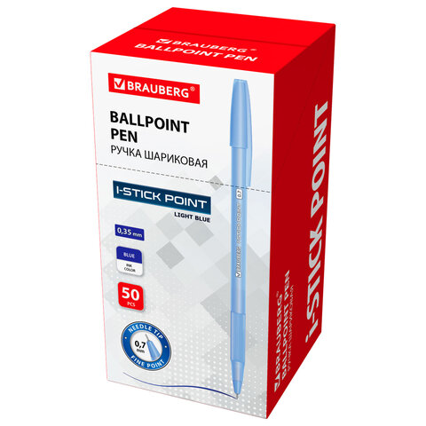 Ручка шариковая с грипом BRAUBERG "i-STICK POINT LIGHT BLUE", СИНЯЯ, пишущий узел 0,7 мм, линия письма 0,35 мм, 144383, 100шт.#S