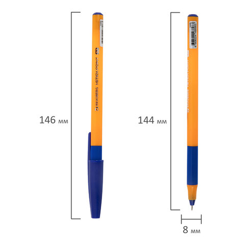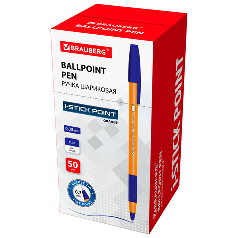 Ручка шариковая с грипом BRAUBERG "i-STICK POINT ORANGE", СИНЯЯ, пишущий узел 0,7 мм, линия письма 0,35 мм, 144386, 100шт.#S