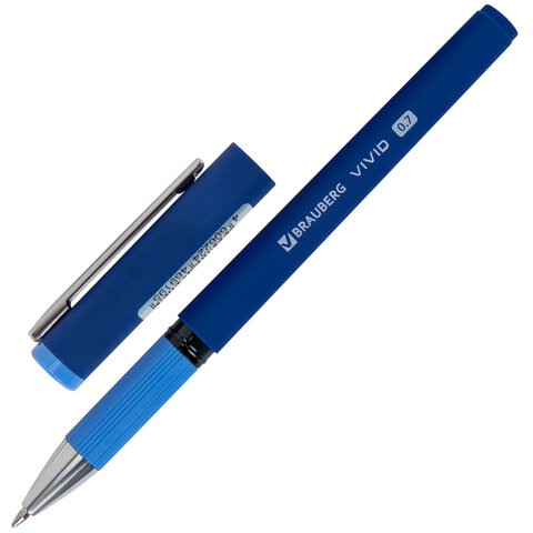 Ручка шариковая с грипом BRAUBERG "VIVID PASTEL", СИНЯЯ, SOFT TOUCH покрытие, узел 0,7 мм, линия письма 0,35 мм, 144399, 24шт.#S