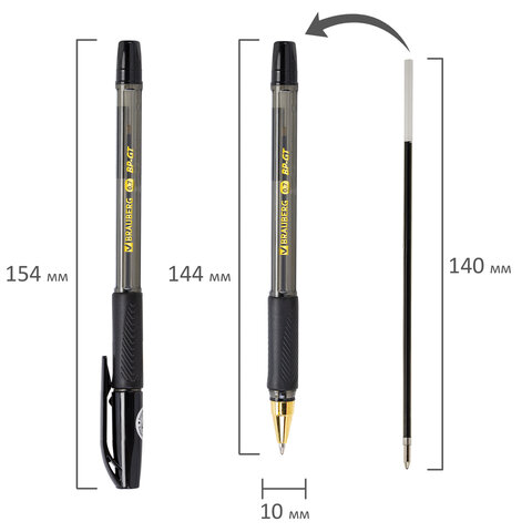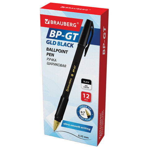 Ручка шариковая BRAUBERG BP-GT GLD BLACK, ЧЕРНАЯ, корпус тонированный, пишущий узел 0,7 мм, линия письма 0,35 мм, 144507, 36шт.#S