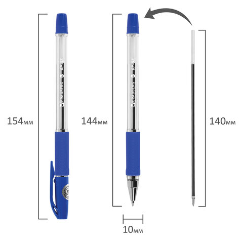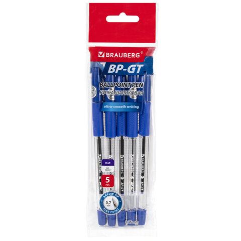 Ручки шариковые BRAUBERG BP-GT, НАБОР 5 ШТУК, СИНИЕ, пишущий узел 0,7 мм, линия письма 0,35 мм, 144509, 6шт.#S