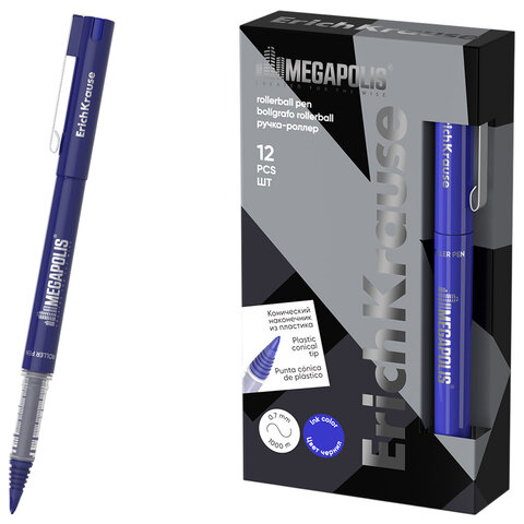 Ручка-роллер ERICH KRAUSE "Megapolis", СИНЯЯ, линия 0,7 мм, 63153, 12шт.#S