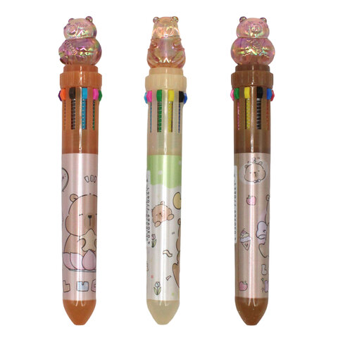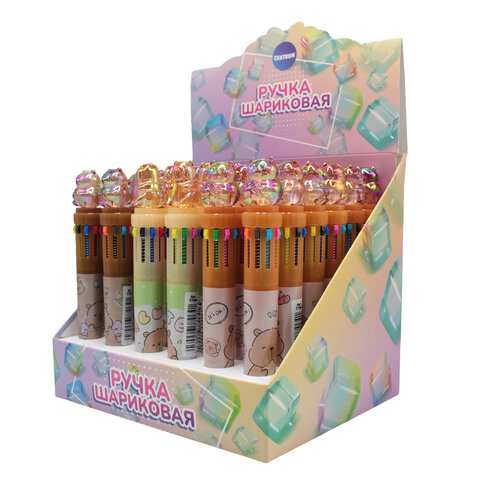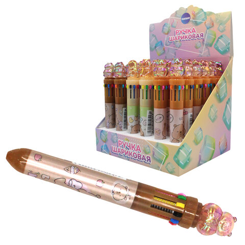 Ручка многоцветная с топпером шариковая 10 ЦВЕТОВ "Капибара", ассорти, линия 0,5 мм, 77427, 36шт.#S