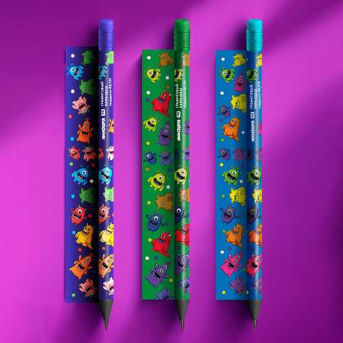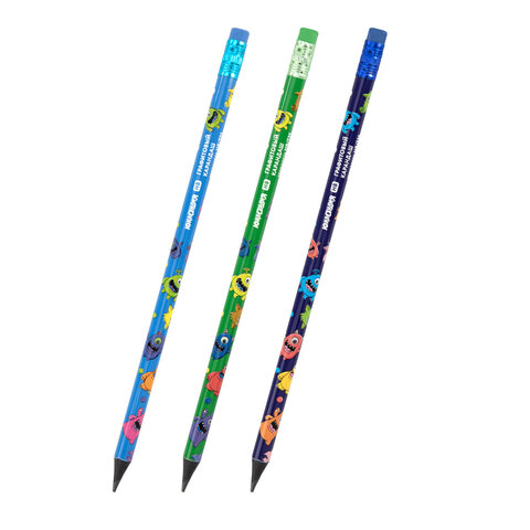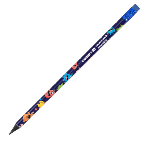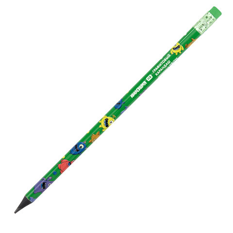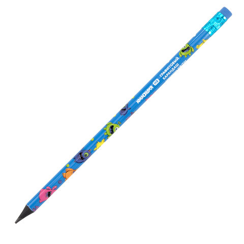 Карандаш чернографитный с принтом ЮНЛАНДИЯ МОНСТРИКИ, 1 шт., HB, с ластиком, корпус ассорти, 182014, 72шт.#S
