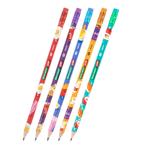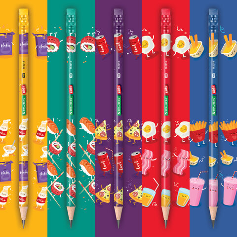 Карандаш чернографитный с принтом BRAUBERG KIDS "FOOD", 1 шт., HB, с ластиком, корпус ассорти, 182018, 72шт.#S
