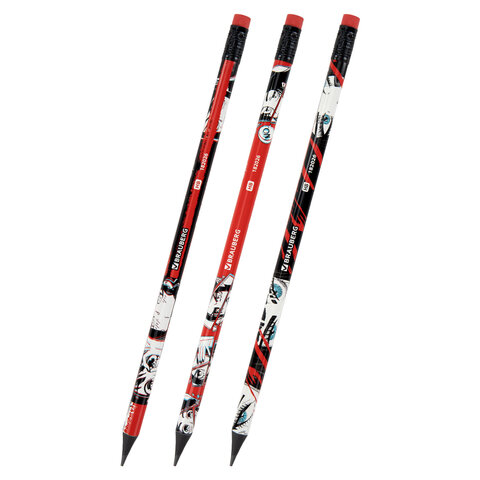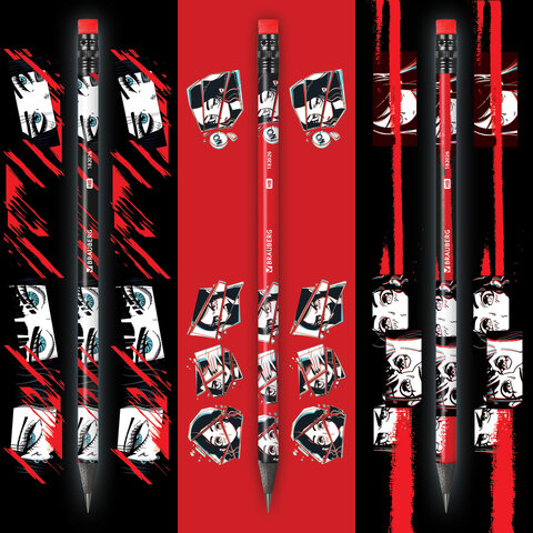 Карандаш чернографитный с принтом BRAUBERG "RED ANIME", 1 шт., HB, с ластиком, корпус ассорти, 182026, 72шт.#S