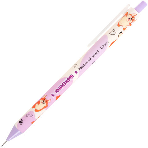 Карандаш механический 0,7 мм с принтом, ЮНЛАНДИЯ "CUTE PETS", корпус soft-touch ассорти, 182061, 24шт.#S