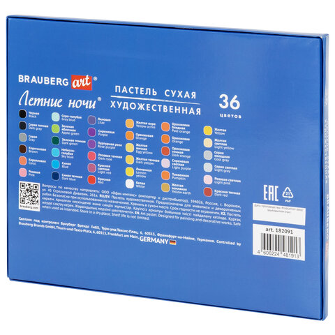 Сухая художественная пастель BRAUBERG ART "Летние ночи" предназначена для графики и живописи. Она отличается насыщенностью цвета, мягким письмом и не крошится при использовании. Подходит как для начинающих художников и любителей, так и профессионалов
