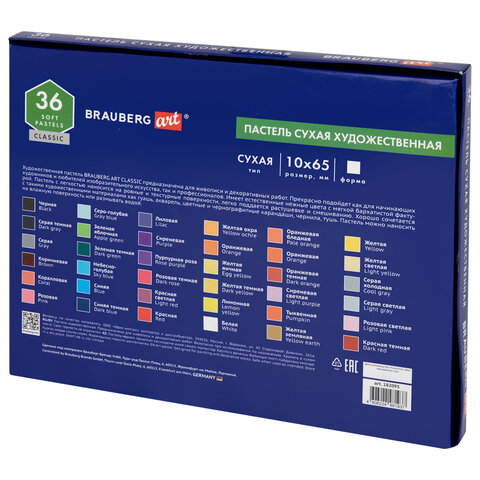 Пастель сухая художественная BRAUBERG ART CLASSIC, 36 цветов, квадратное сечение, 182093, 2шт.#S