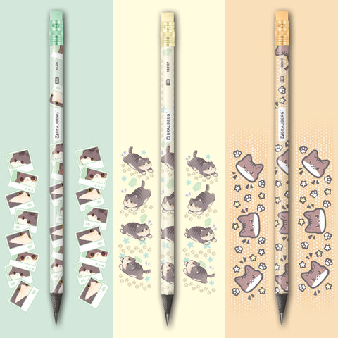 Карандаш чернографитный BRAUBERG "CUTE CATS" – первый помощник для выполнения различных заметок. Позволяет сделать легкий набросок, быстрый стремительный рисунок или нарисовать полноценную картину. Используется повсеместно.