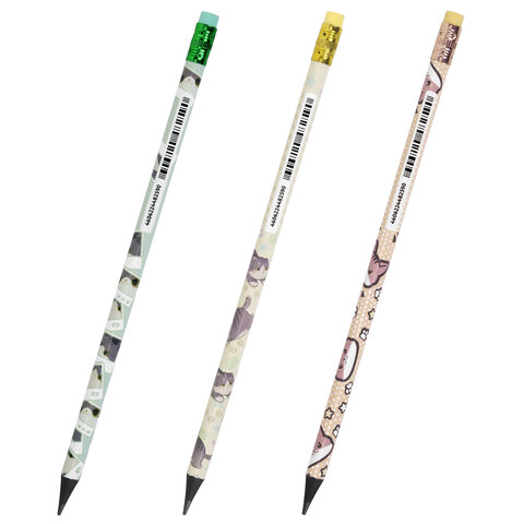 Карандаш чернографитный с принтом кросс-серия МИЛЫЕ КОТЫ, 1 шт., HB, ластик, ассорти, BRAUBERG, 182107, 72шт.#S