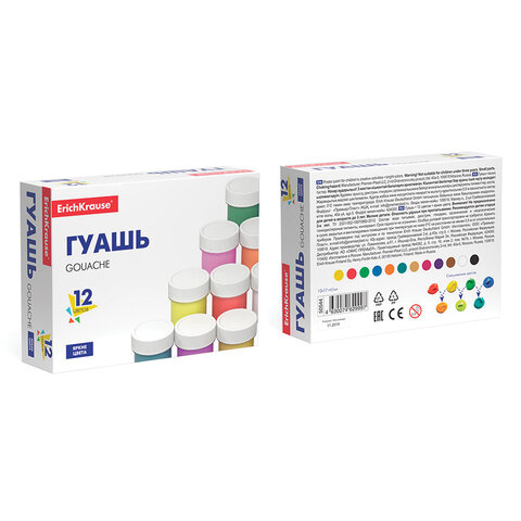 Гуашь ERICH KRAUSE Basic, 12 цветов по 17 мл, картонная упаковка, 50544, 6шт.#S