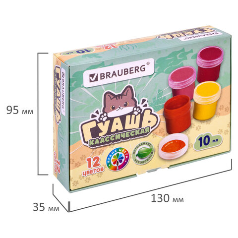 Гуашь BRAUBERG "МИЛЫЕ КОТЫ", 12 цветов по 10 мл, 192640, 6шт.#S
