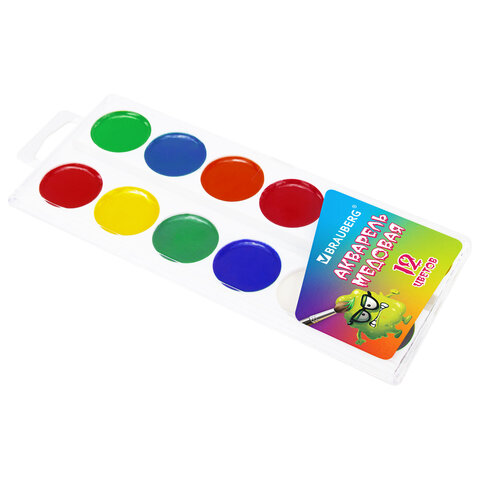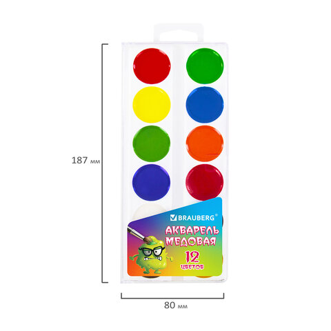 Краски акварельные BRAUBERG "МОНСТРИКИ", медовые, 12 цветов, круглые кюветы, 192641, 12шт.#S