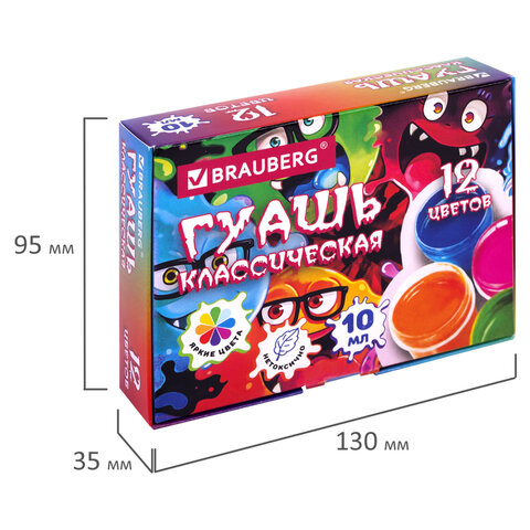 Гуашь BRAUBERG "МОНСТРИКИ", 12 цветов по 10 мл, 192642, 6шт.#S