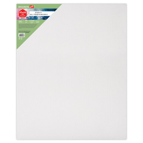 Холст на подрамнике BRAUBERG ART BASIC, 50х60 см, 280 г/м2, хлопок, мелкое зерно, грунт, 192668, 2шт.#S