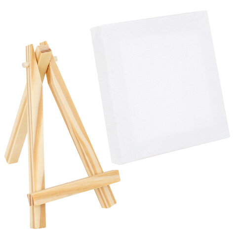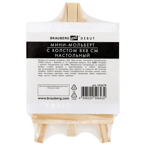 Настольный мини-мольберт с холстом 8х8 см, BRAUBERG ART DEBUT, сосна, хлопок, 192679, 10шт.#S