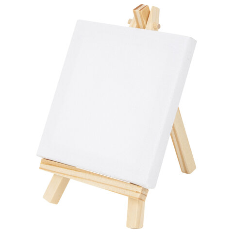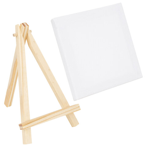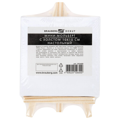 Настольный мини-мольберт с холстом 10х10 см, BRAUBERG ART DEBUT, сосна, хлопок, 192680, 10шт.#S