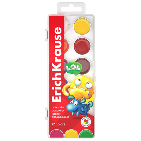 Краски акварельные ERICH KRAUSE "Jolly Friends", 12 цветов, пластиковый пенал, европодвес, 61366, 7шт.#S
