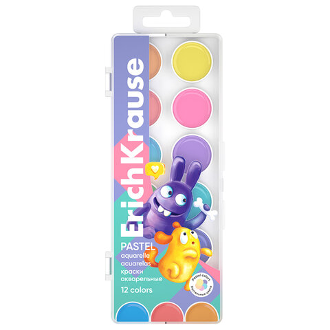 Краски акварельные ERICH KRAUSE "Jolly Friends Pastel", 12 цветов, пластиковый пенал, европодвес, 61370, 7шт.#S