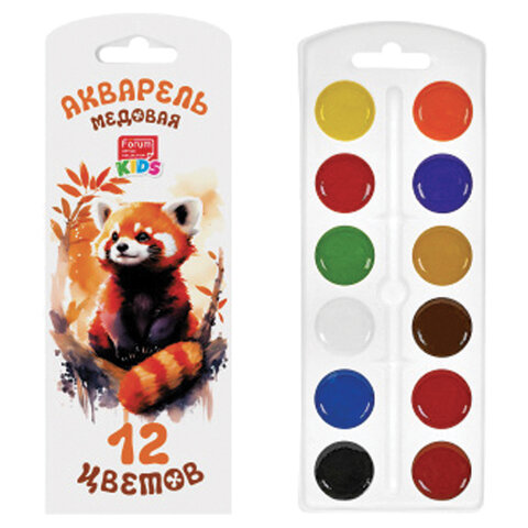 Краски акварельные FORUM "Зверята" 12 цветов, медовые, круглые кюветы, картонная коробка, FA-EV-012E, 30шт.#S