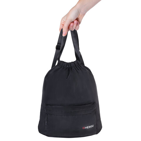 Рюкзак спортивный мешок HEIKKI CASUAL (ХЕЙКИ) с дополнительным карманом, 44х34 см, "Total black", 273457#S