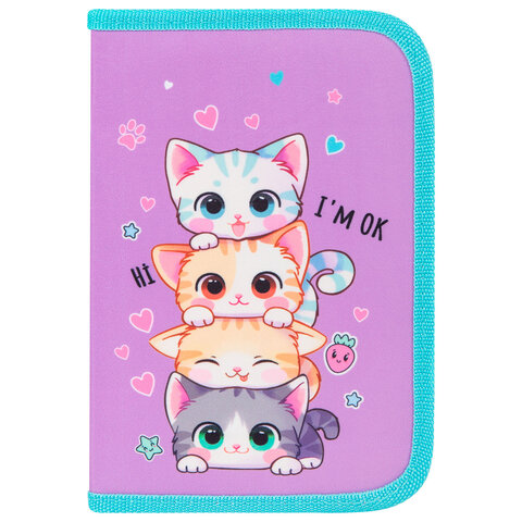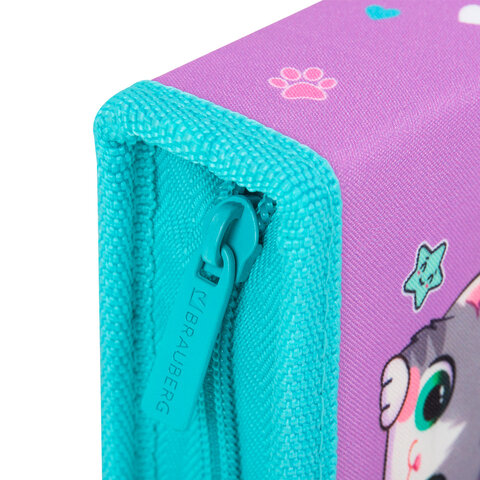 Пенал BRAUBERG, 1 отделение, 1 откидная планка, полиэстер, 21х14 см, "Funny kittens", 273523, 2шт.#S