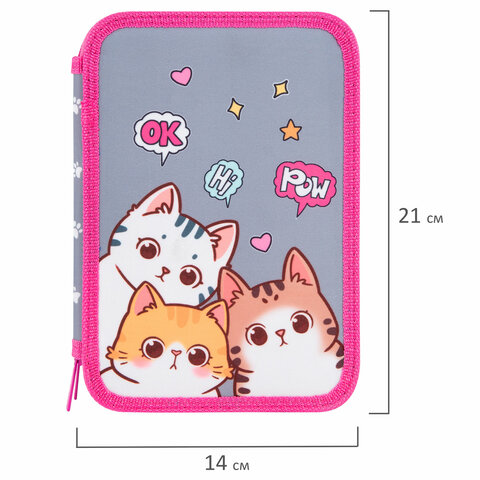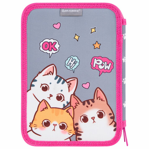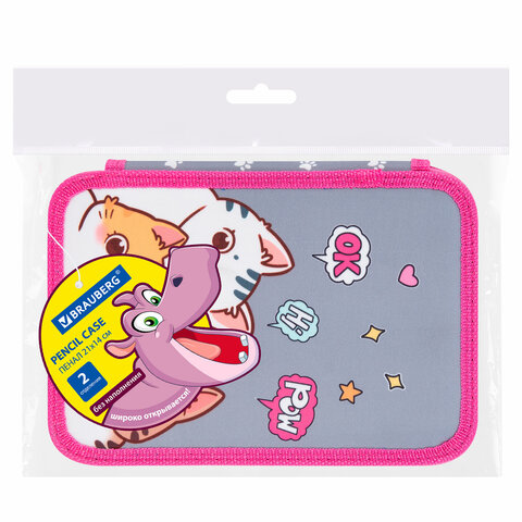 Пенал BRAUBERG, 2 отделения, полиэстер, 21х14 см, "Hi there", 273536, 2шт.#S