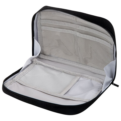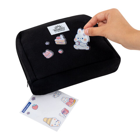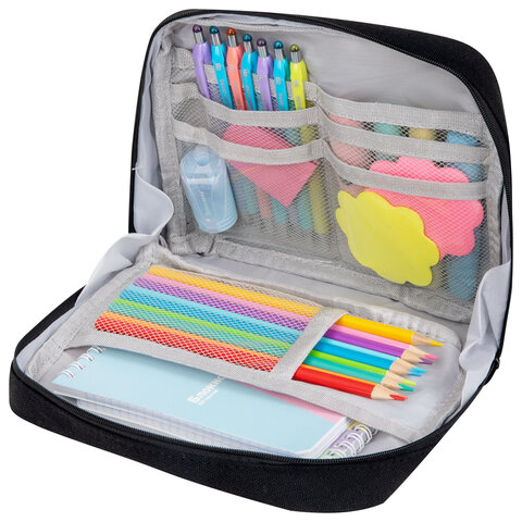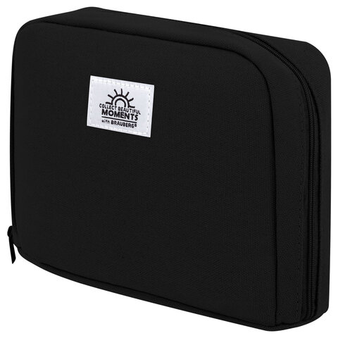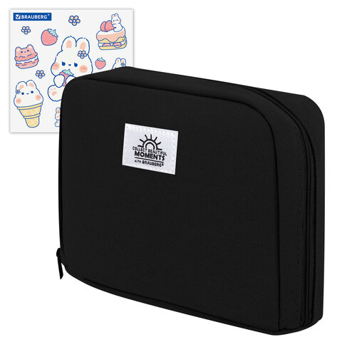 Пенал-органайзер BRAUBERG, 1 отделение, С НАКЛЕЙКАМИ, молния вокруг, канвас, 22x15х6 см, черный, 273596, 2шт.#S