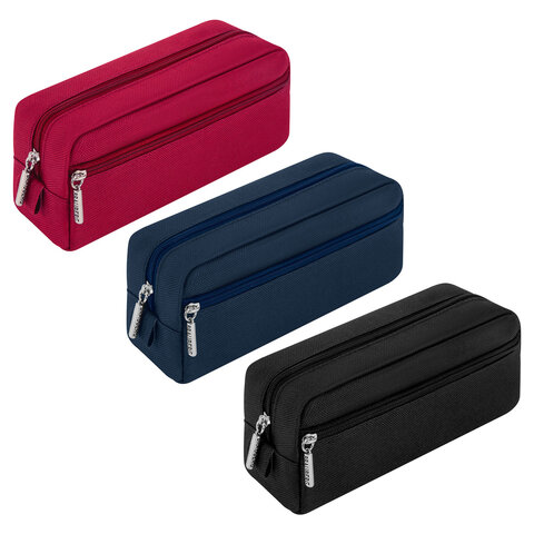 Пенал мягкий BRAUBERG, 2 отделения, ассорти 3 цвета, "Basic", 19х9х4 см, дисплей, 273611, 12шт.#S